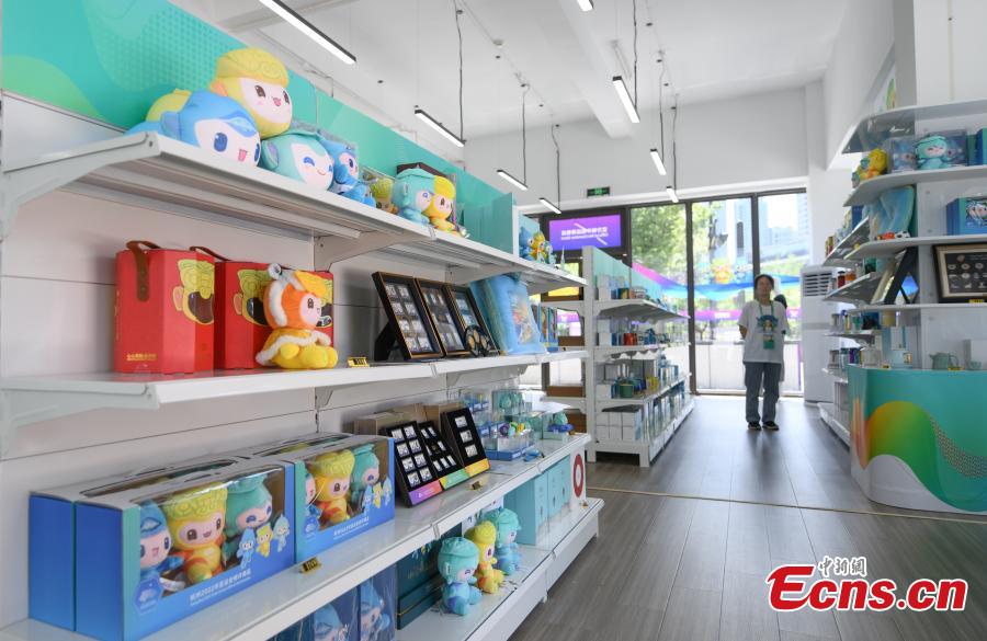 Official souvenirs for Hangzhou Asian Games are displayed in an authorized store at the Media Village for Hangzhou Asian Games in east China's Zhejiang Province, June 28, 2023. (Photo: China News Service/Wang Gang)