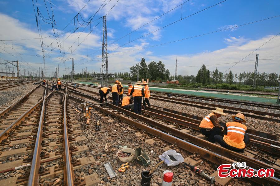 Railway workers endure extreme heat to conduct maintenance work in Nanyang, central China's Henan Province, July 6, 2023. (Photo: China News Service/Zhang Zhonghai)