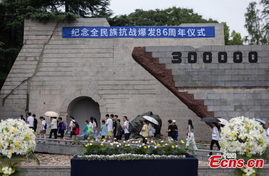 People visit the Memorial Hall of the Victims of the Nanjing Massacre by Japanese Invaders to mark the 86th anniversary of the beginning of China's whole-of-nation resistance war against Japanese aggression in Nanjing, east China's Jiangsu Province, July 7, 2023. (Photo: China News Service/Yang Bo)