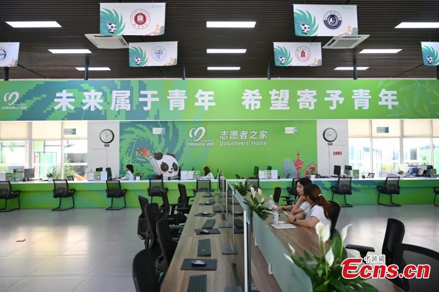Volunteers work at the Volunteers' Home at the athletes' village for the 31st FISU Summer World University Games in Chengdu, southwest China's Sichuan Province, July 16, 2023. (Photo: China News Service/An Yuan)