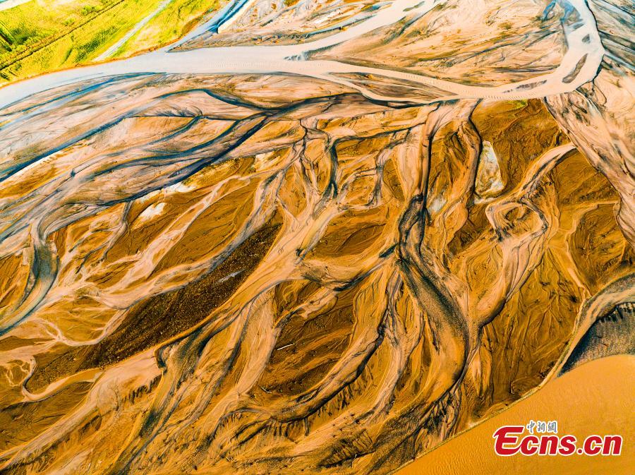 Multiple branches are washed out by increased water volume from the upstream on Cherchen River, creating a stunning landscape in Qiemo County, Bayingolin Mongolian Autonomous Prefecture, northwest China's Xinjiang Uyghur Autonomous Region, July 17, 2023. (Photo/China News Service)