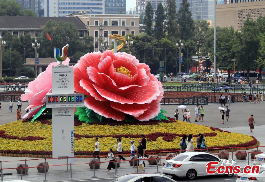 An electronic clock counts down the time until the opening of the Chengdu Universiade at Tianfu square in Chengdu, southwest China's Sichuan Province, July 25, 2023. (Photo: China News Service/Wang Lei)