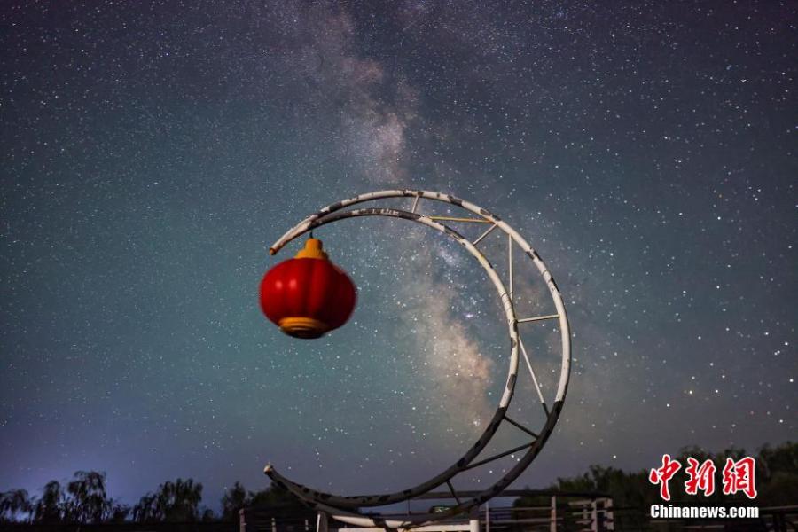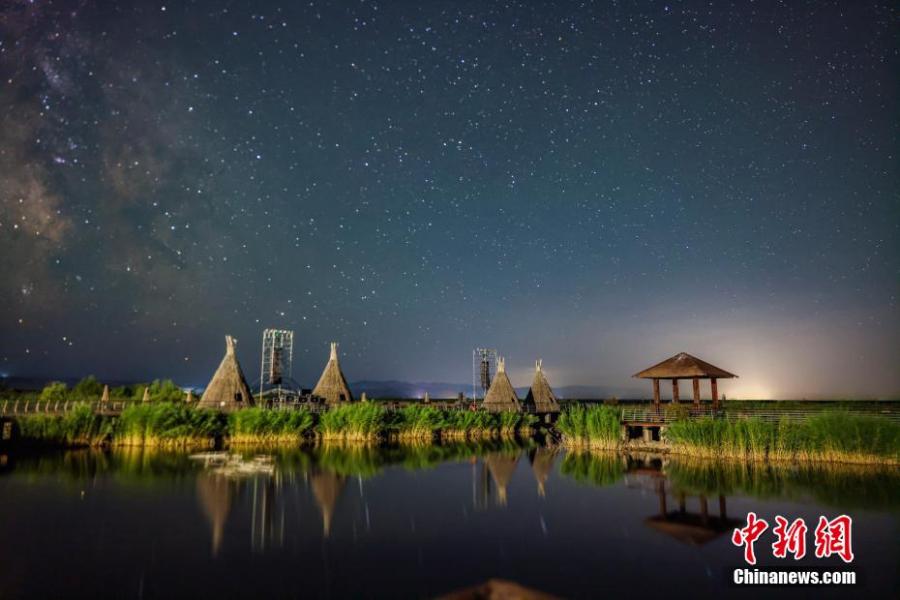 Starry night sky with Milk Way over Nalati National Wetland forms a fantasy landscape in northwest China's Xinjiang Uygur Autonomous Region, July 24, 2023. (Photo: China News Service/Zhang Wenting)
