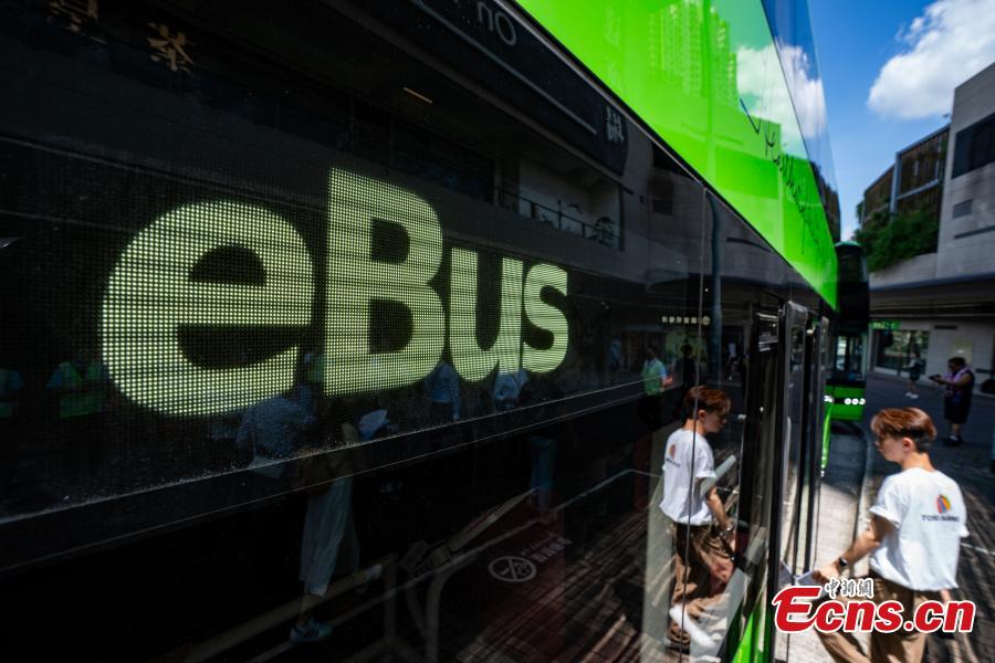 A double-decker electric bus parks at a station in the Hong Kong Special Administrative Region, July 27, 2023. (Photo: China News Service/Hou Yu)