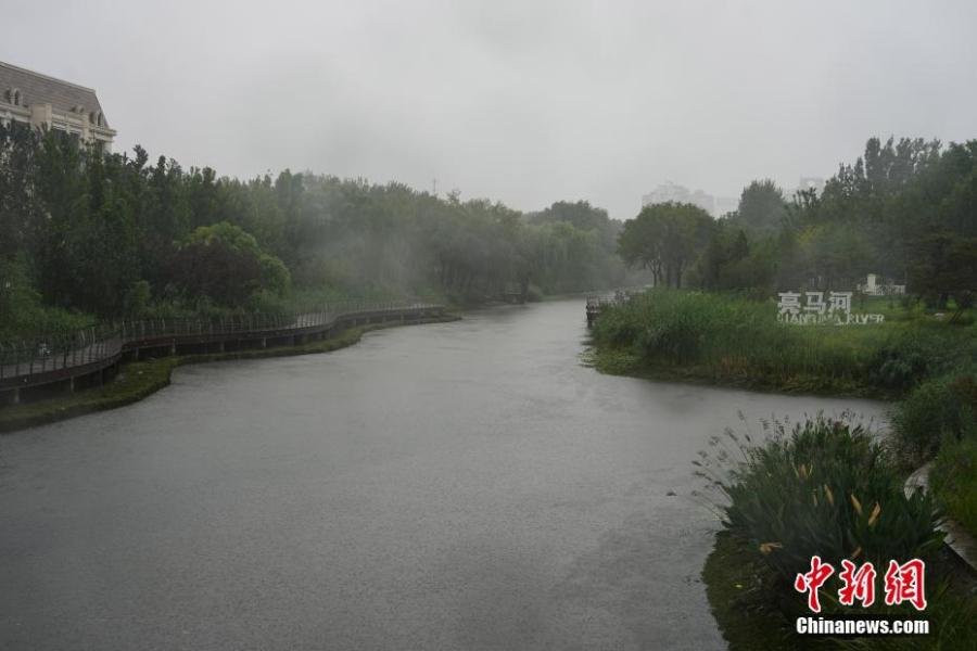 Photo shows rising the water level of the Liangma River in Beijing due to a heavy rainstorm July 30, 2023. (Photo: China News Service/Yi Haifei)