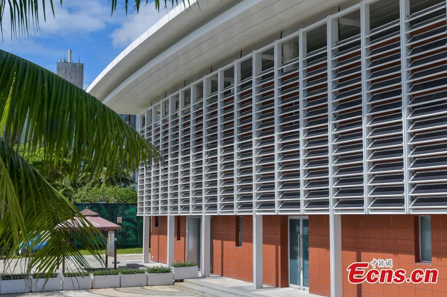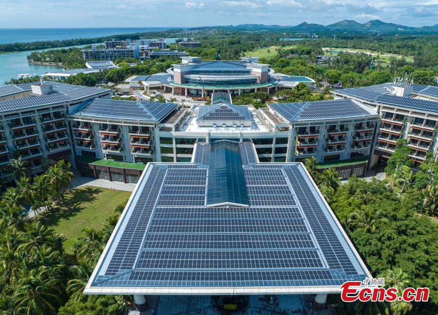 Photo taken on Aug. 3 shows the renovated press center of Boao Forum for Asia, located in south China's Hainan Province, is installed with solar panels. (Photo: China News Service/Luo Yunfei)