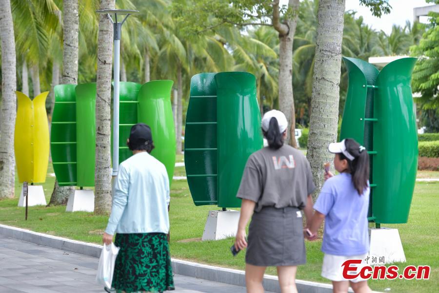 Flower-shaped wind turbines are installed in the zero-carbon demonstration zone in Boao, south China's Hainan Province. (Photo: China News Service/Luo Yunfei)