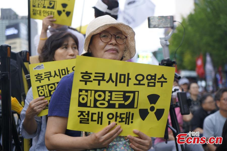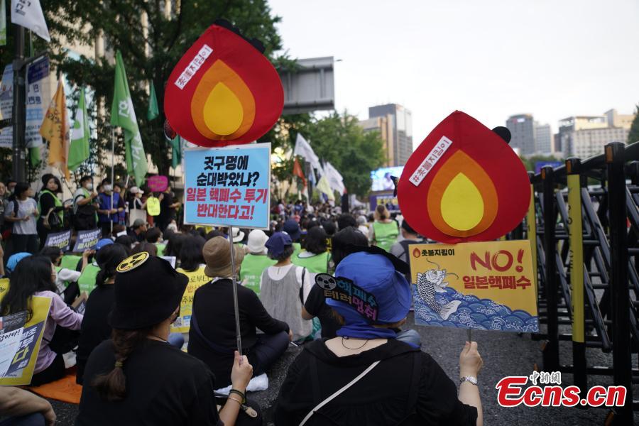 Hundreds of South Koreans gathered in Seoul on Saturday to oppose an initiative by Japan to release treated nuclear wastewater from the tsunami-devastated Fukushima plant into the ocean.