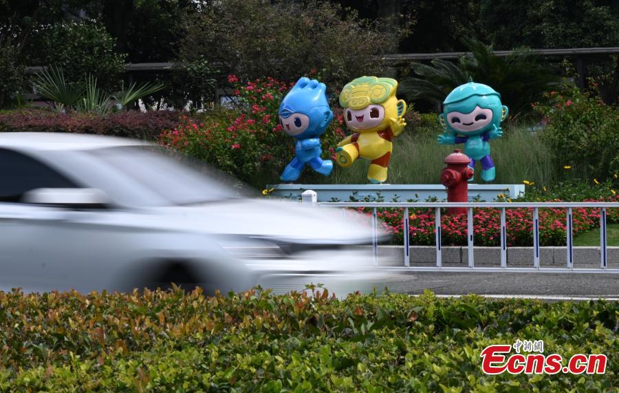 Mascots of the 19th Asian Games are set up in Hangzhou, east China's Zhejiang Province, Sept. 11, 2023. (Photo: China News Service/Wang Gang)