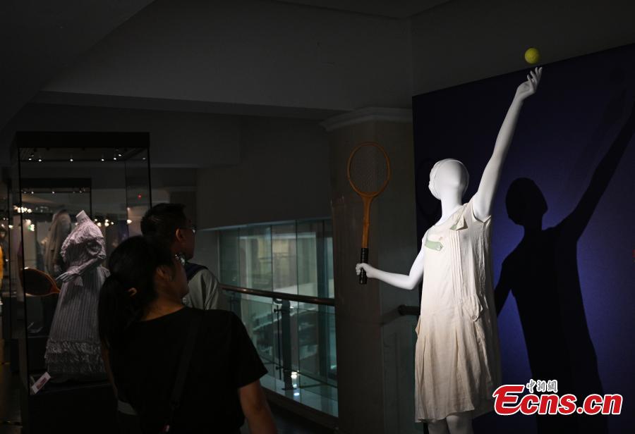 A century-old tennis dress is displayed at the China National Silk Museum ahead of the 19th Asian Games in Hangzhou, east China's Zhejiang Province, Sept. 14, 2023. (Photo: China News Service/Wang Gang)