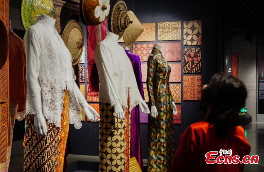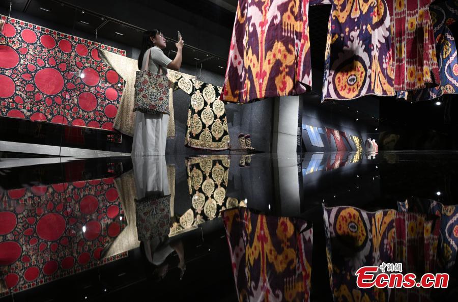 Visitors view exhibits themed on sportswear at the China National Silk Museum ahead of the 19th Asian Games in Hangzhou, east China's Zhejiang Province, Sept. 14, 2023. (Photo: China News Service/Wang Gang)