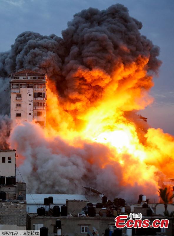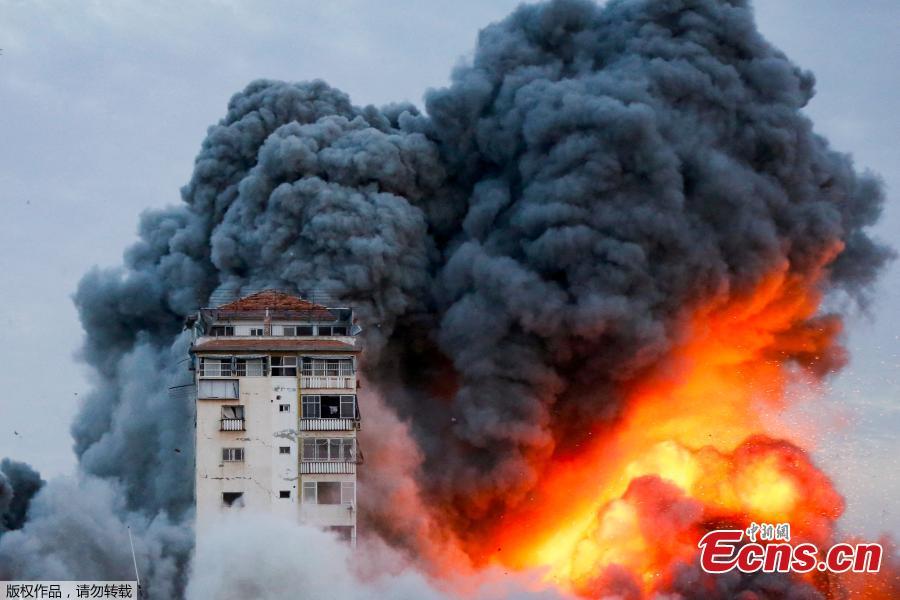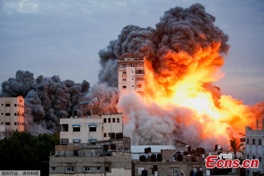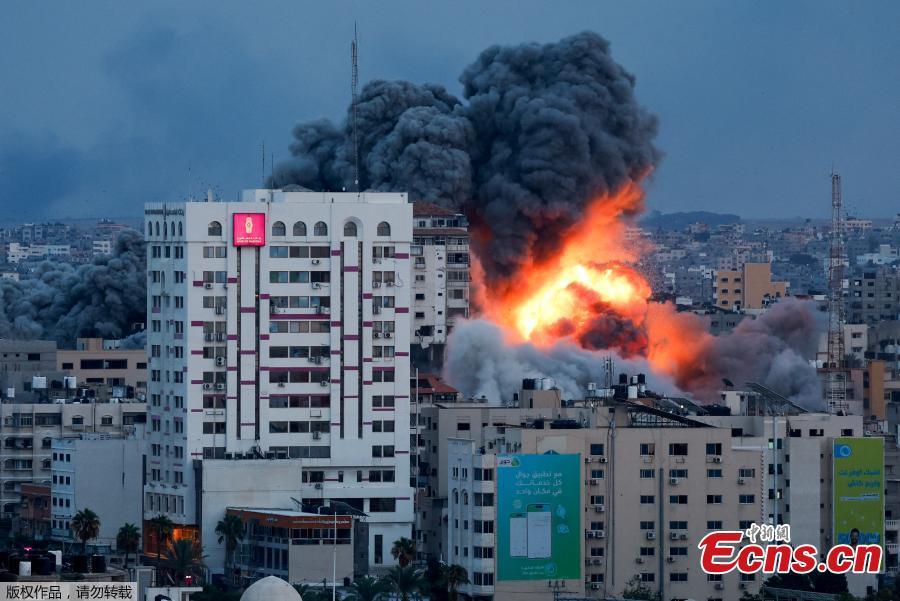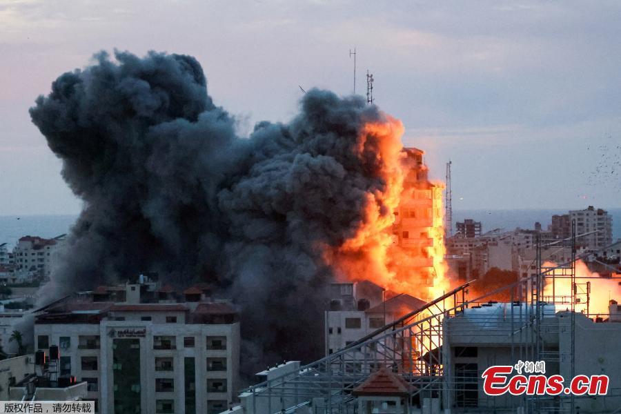 A ball of fire and smoke rises above a building in Gaza City during an Israeli air strike, Oct. 7, 2023. (Photo/Agencies)
