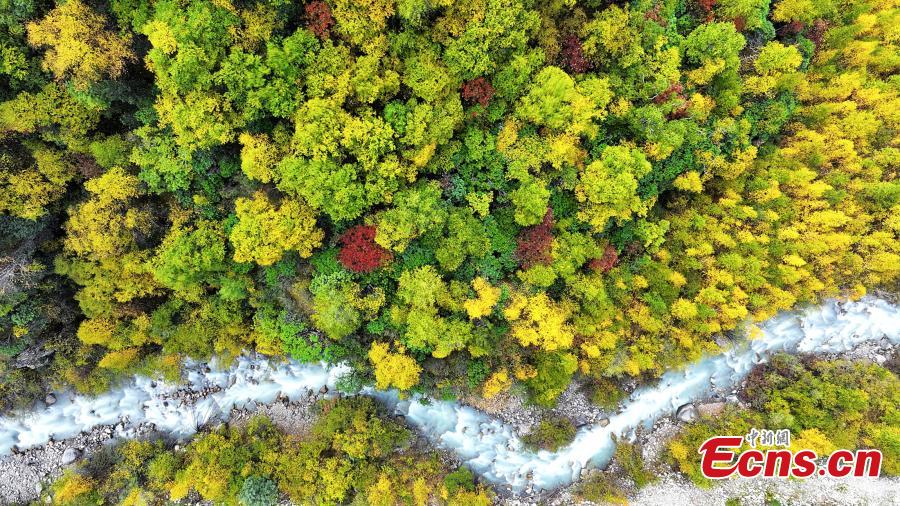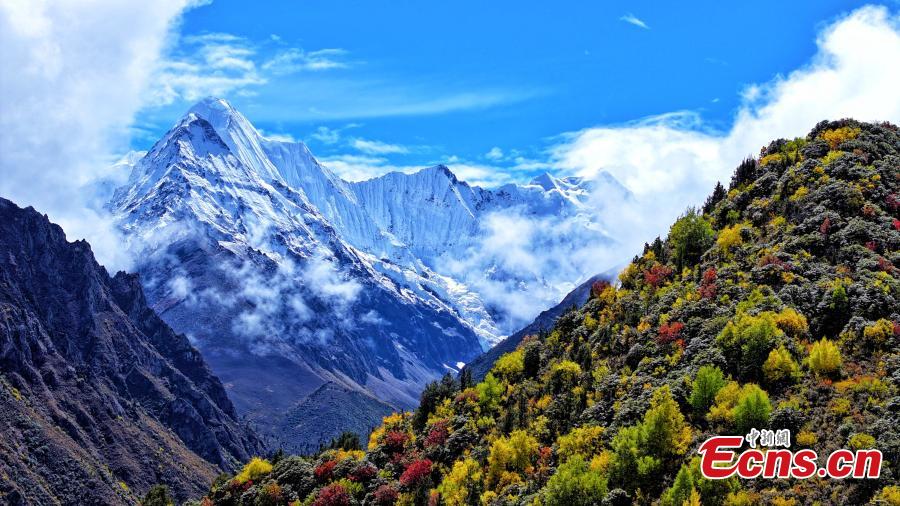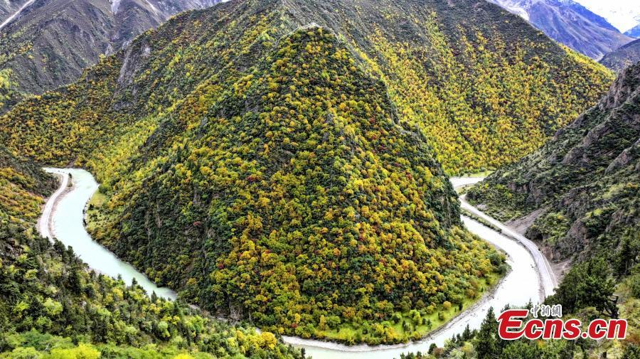 Snow-capped mountains and colorful National Wetland Park turn Lhari County into gorgeous autumn landscape in Nagqu, southwest China's Tibet Autonomous Region. (Photo/China News Service)