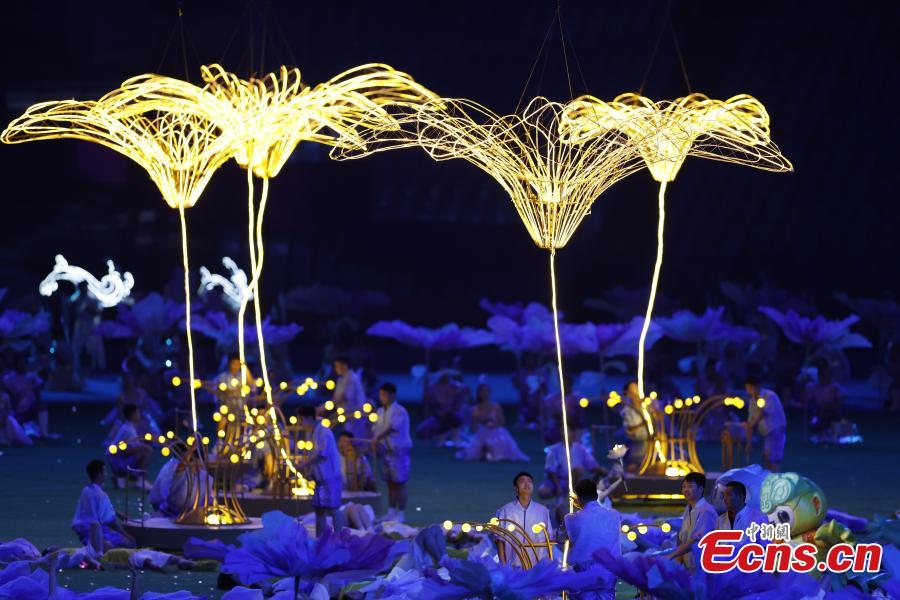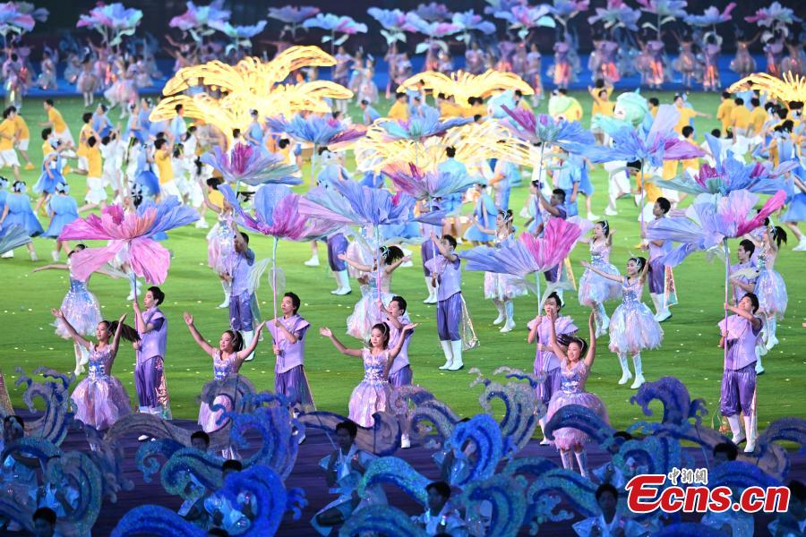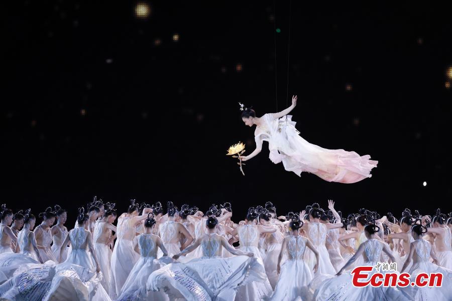 Artists perform during the closing ceremony of the 19th Asian Games at the Hangzhou Olympic Sports Center Stadium in east China's Zhejiang Province, Oct. 8, 2023. (Photo: China News Service/Wang Dongming)