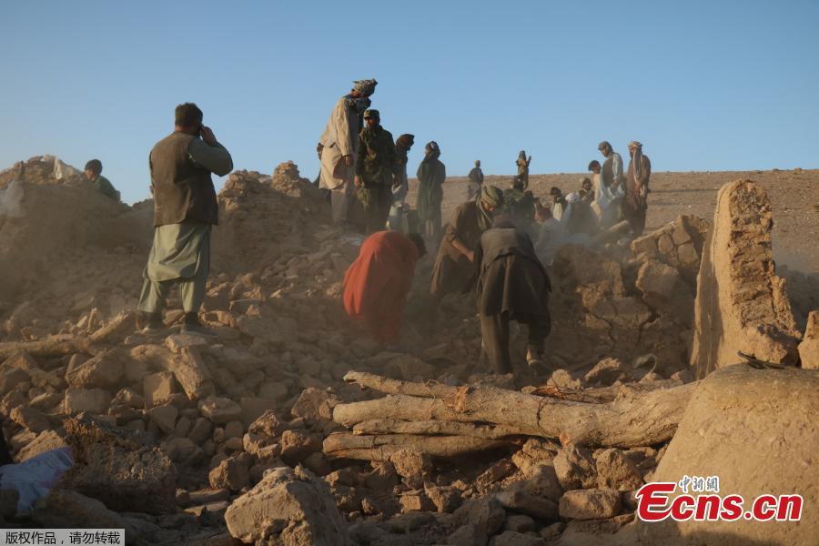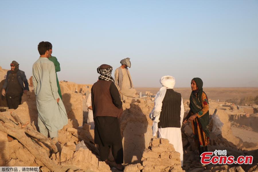 Afghan residents clear debris from a damaged house after earthquake in Sarbuland village of Zendeh Jan district of Herat province, Afghanistan, Oct. 7, 2023. (Photo/Agencies)