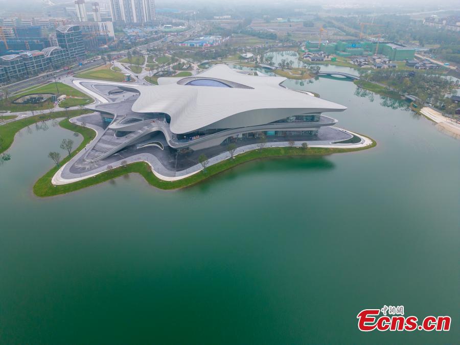 Drone photo shows Chengdu Science Fiction Museum, the main venue for the 2023 Chengdu Science Fiction Convention, in southwest China's Sichuan Province, Oct. 10, 2023. (Photo: China News Service/Zhang Lang)