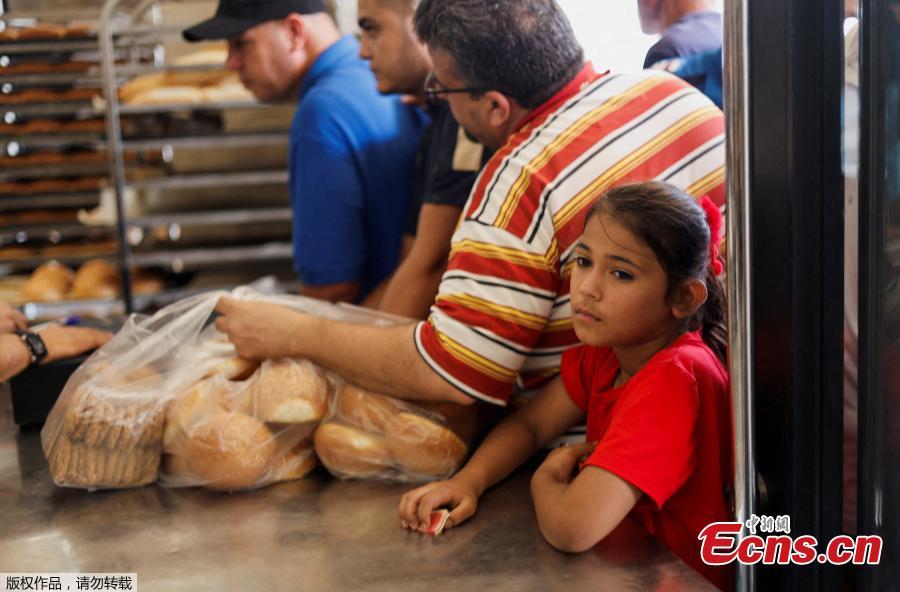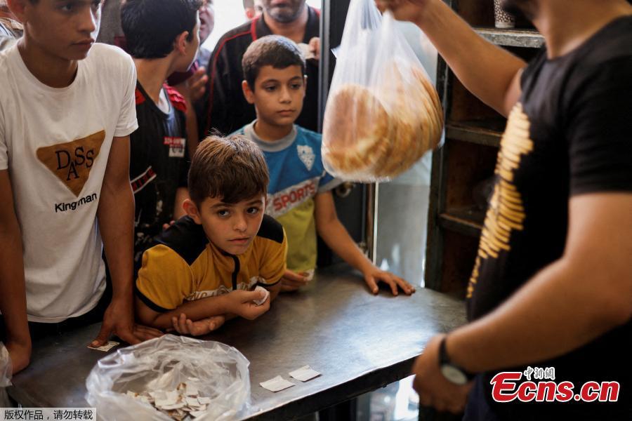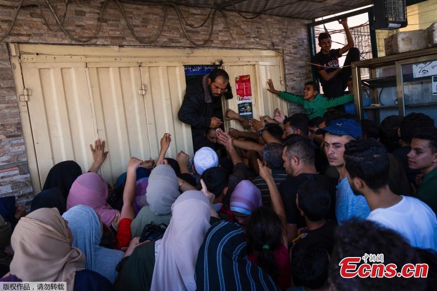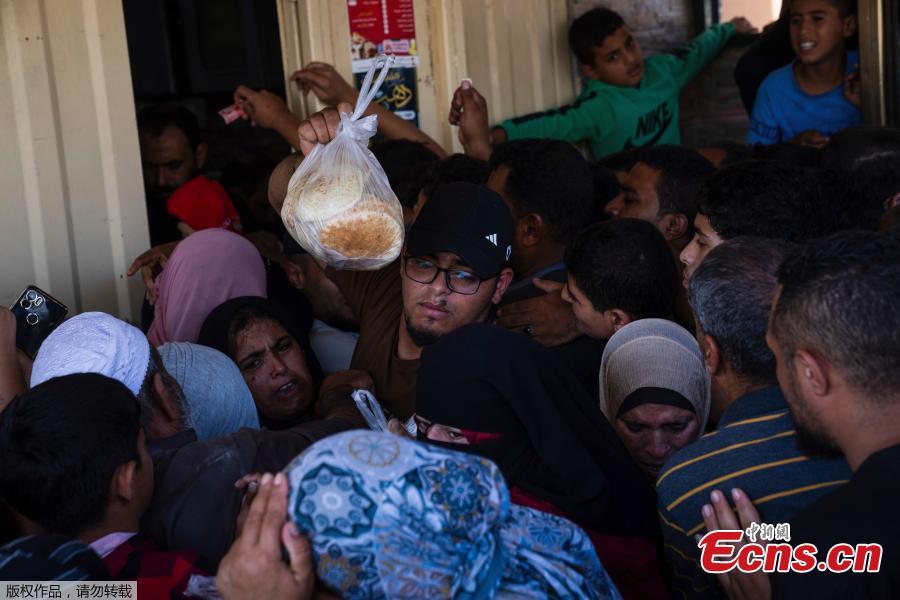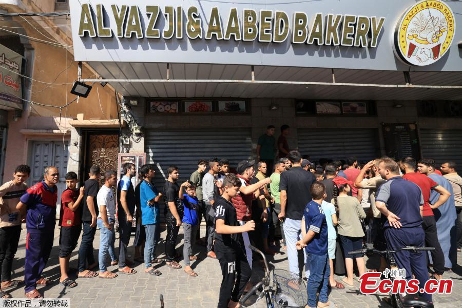 Palestinians wait to buy bread outside a bakery, amid the ongoing conflict between Israel and Palestinian Islamist group Hamas, in Khan Younis in the southern Gaza Strip, Oct. 14, 2023. (Photo/Agencies)
