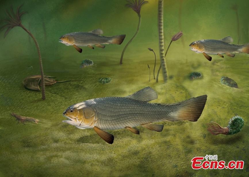 Artist’s restoration of a new basal ginglymodian fish discovered in Luoping County of Qujing in southwest China's Yunnan, Oct. 19, 2023. (Photo Provided to China News Service)