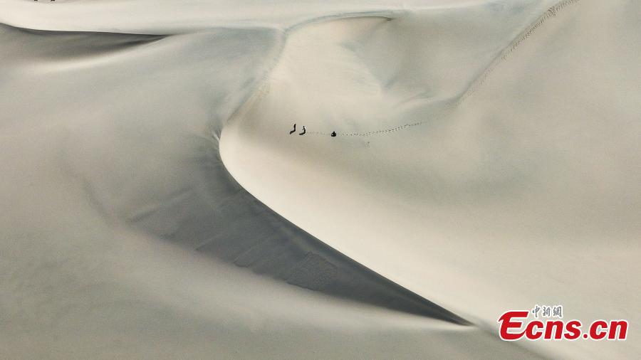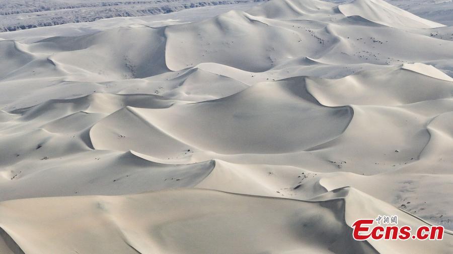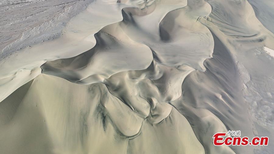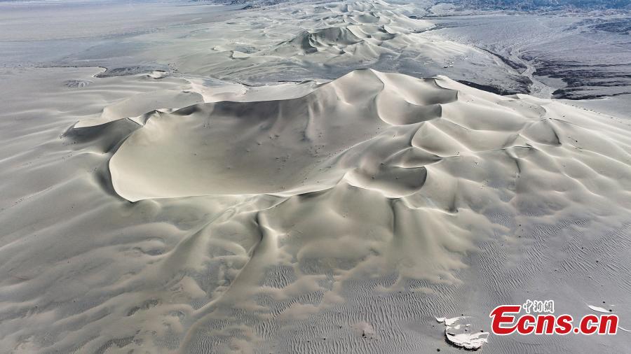 Sharp ridge at the edge of sand dunes with wind blown rippled sand pattern in Toksun County, northwest China's Xinjiang Uyghur Autonomous Region. (Photo: China News Service/Liu Yanmin)