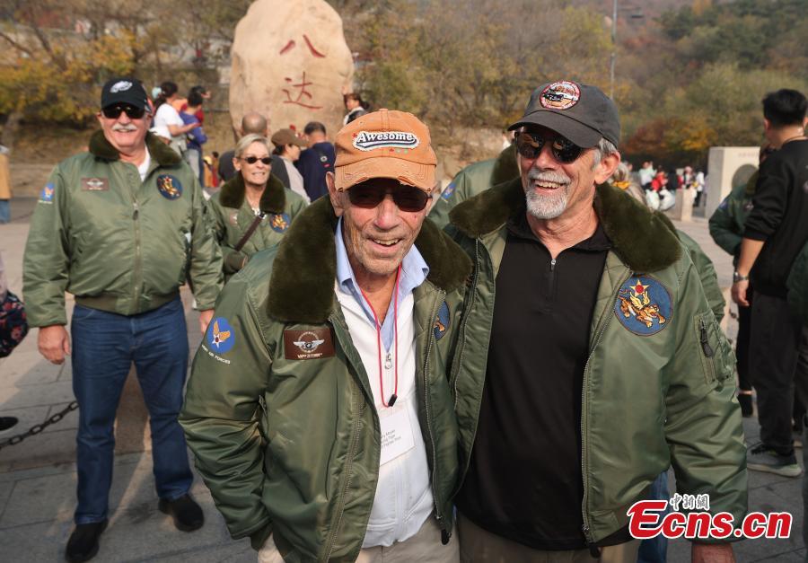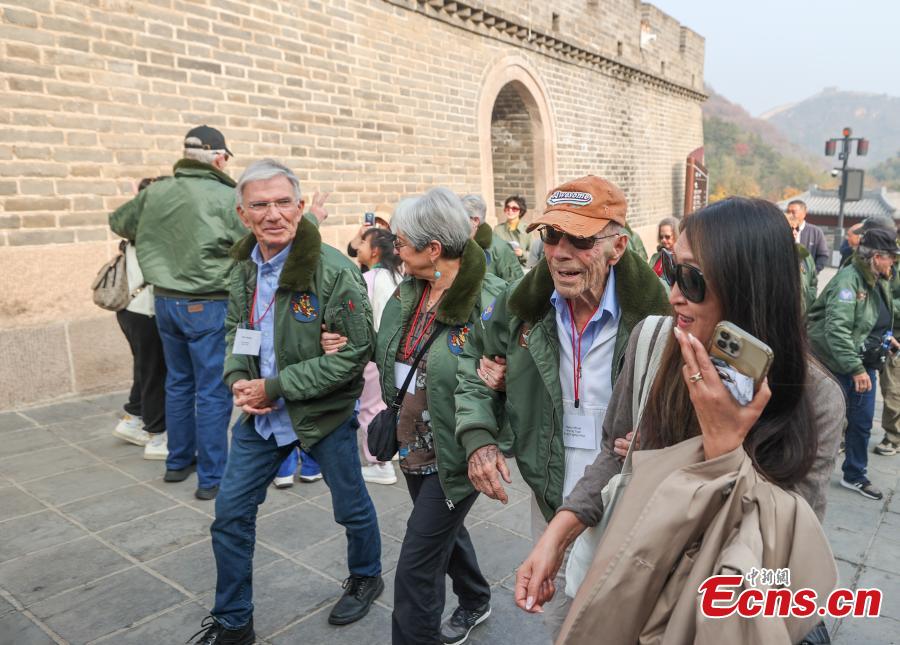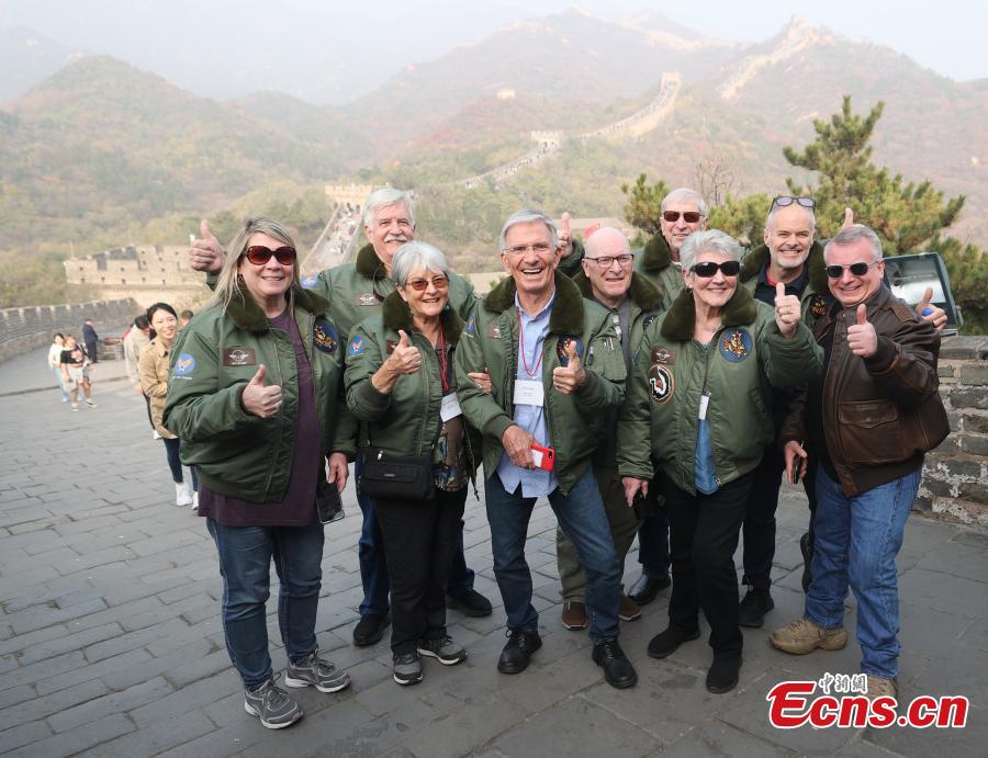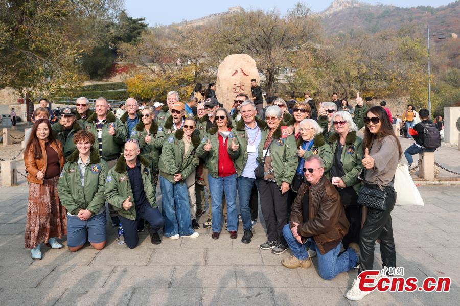Members and families of the U.S. Flying Tigers pose for a group photo on the Badaling section of the Great Wall in Beijing, Oct. 29, 2023. (Photo: China News Service/Jia Tianyong)