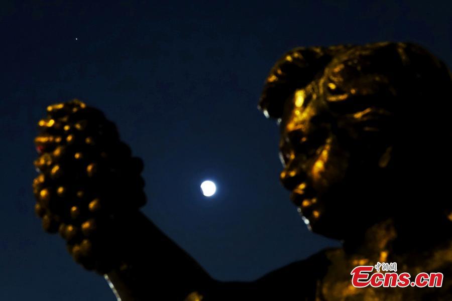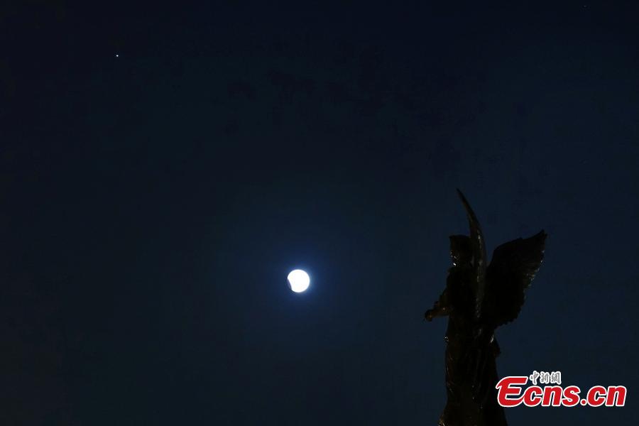 A partial lunar eclipse is spotted over the sky in Dalian, northeast China's Liaoning Province, Oct. 29, 2023. (Photo provided to China News Service)