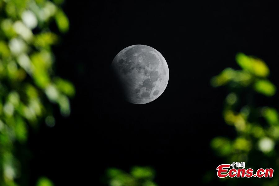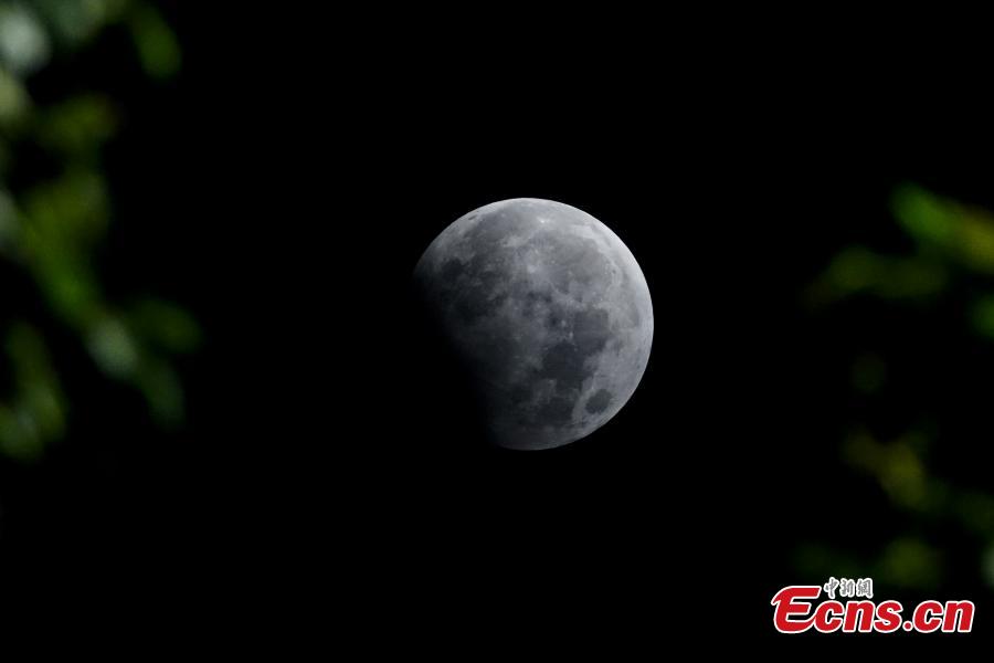 The partial lunar eclipse occurred on from 3:34 p.m. to 4:54 p.m. and part of Earth’s shadow reflected on the moon.