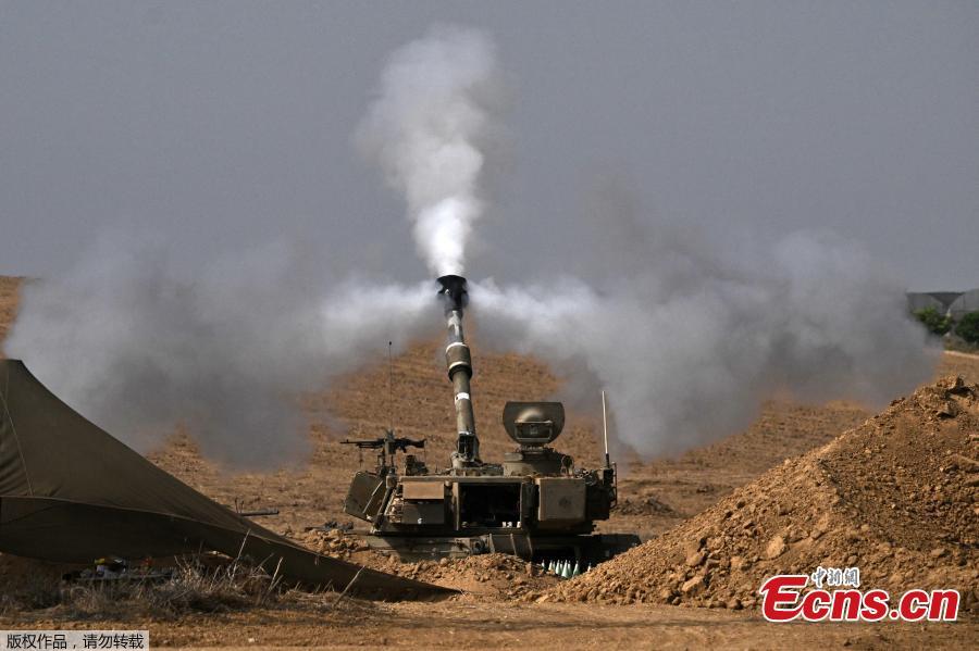 An Israeli army M109 155mm self-propelled howitzer fires rounds toward the Gaza Strip from a position in southern Israel across the border, Oct. 28, 2023. (Photo/Agencies)