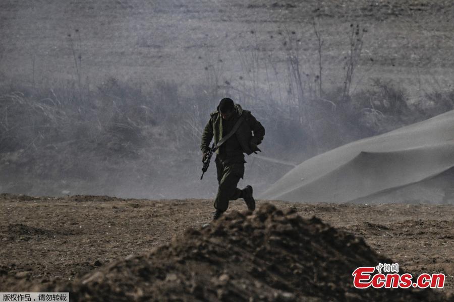 An Israeli soldier runs in a field on the border with the Gaza Strip, Oct. 28, 2023. (Photo/Agencies)