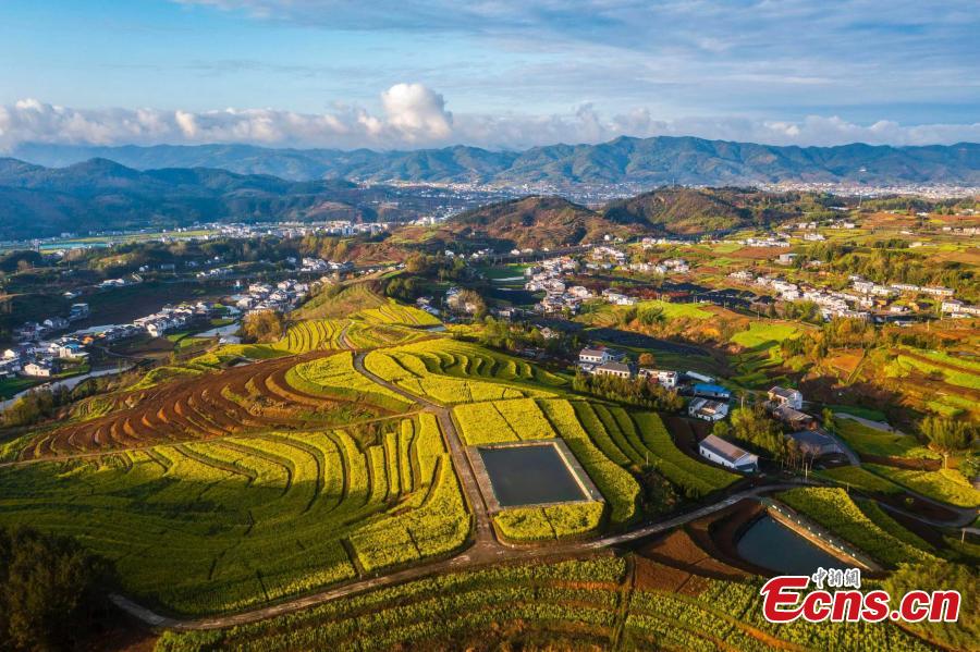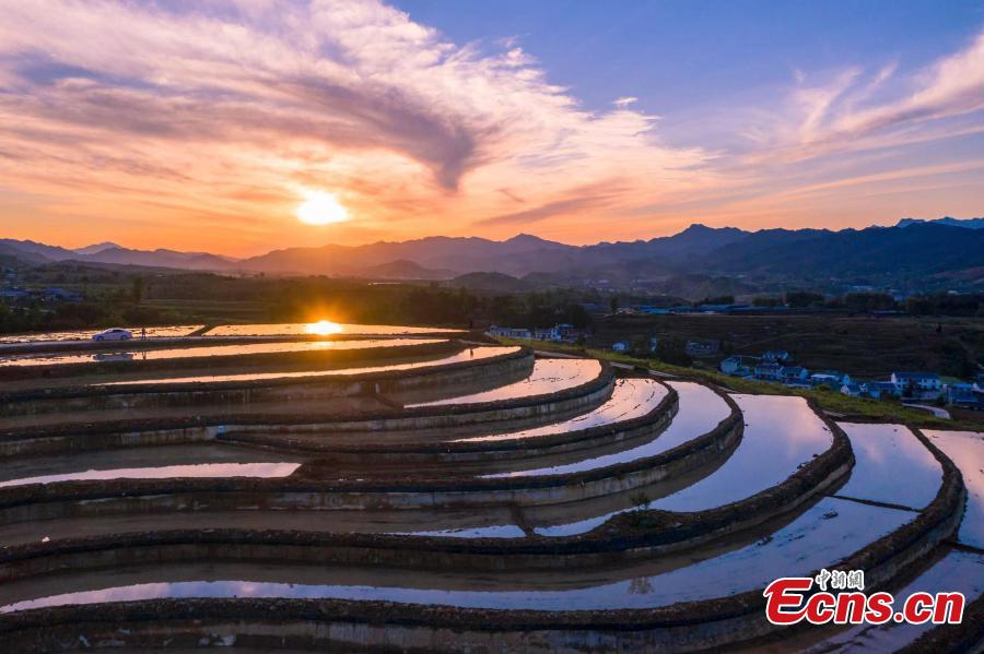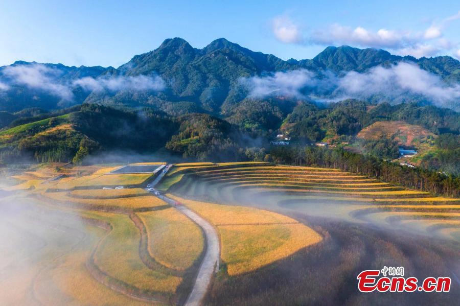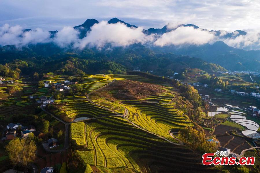 Picturesque scenery of terraced fields in Zhuxi County, central China's Hubei Province. Autumn turns terraced fields into a color palette. (Photo: China News Service/Shuai Yun)