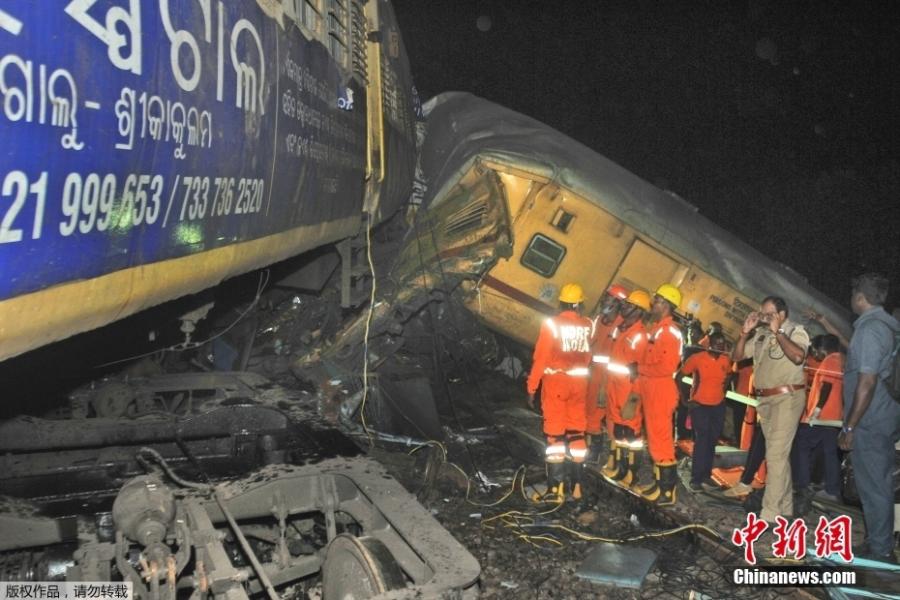 Rescue workers and police officials stand next to damaged coaches following a collision between two passenger trains in Vizianagaram district in the southern Andhra Pradesh state, India, Oct. 30, 2023. (Photo/Agencies)