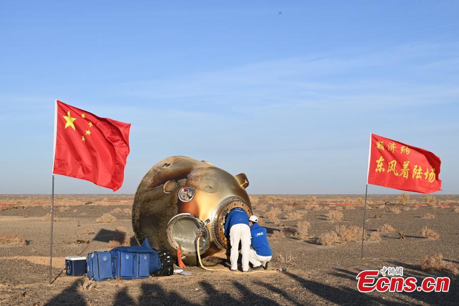 The return capsule of the Shenzhou-16 manned spaceship, carrying astronauts Jing Haipeng, Zhu Yangzhu and Gui Haichao, touched down at the Dongfeng landing site on Tuesday morning.