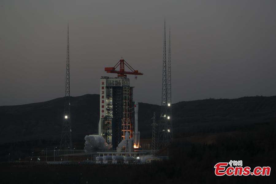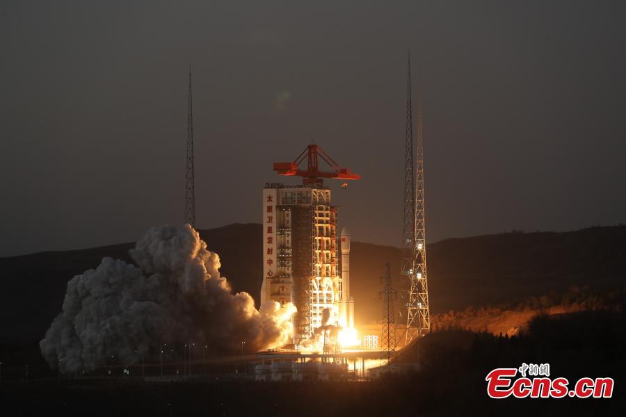 A modified version the Long March-6 carrier rocket carrying Tianhui-5 satellite blasts off from the Taiyuan Satellite Launch Center in north China's Shanxi Province, Nov. 1, 2023. (Photo: China News Service/Zheng Bin)