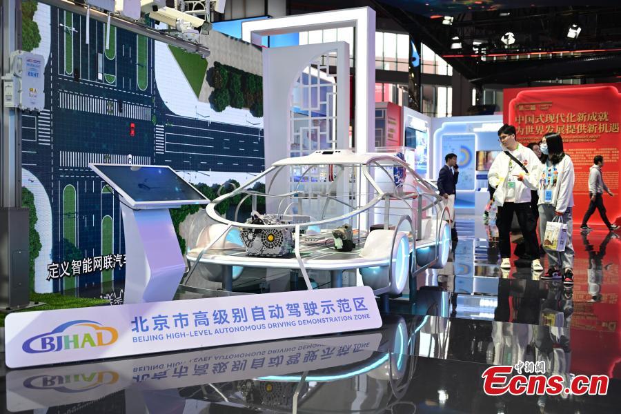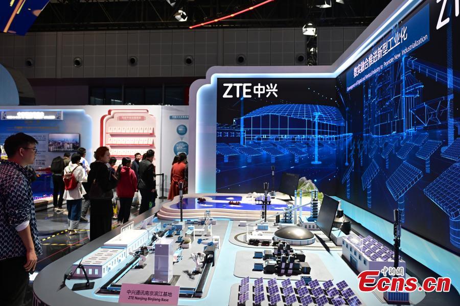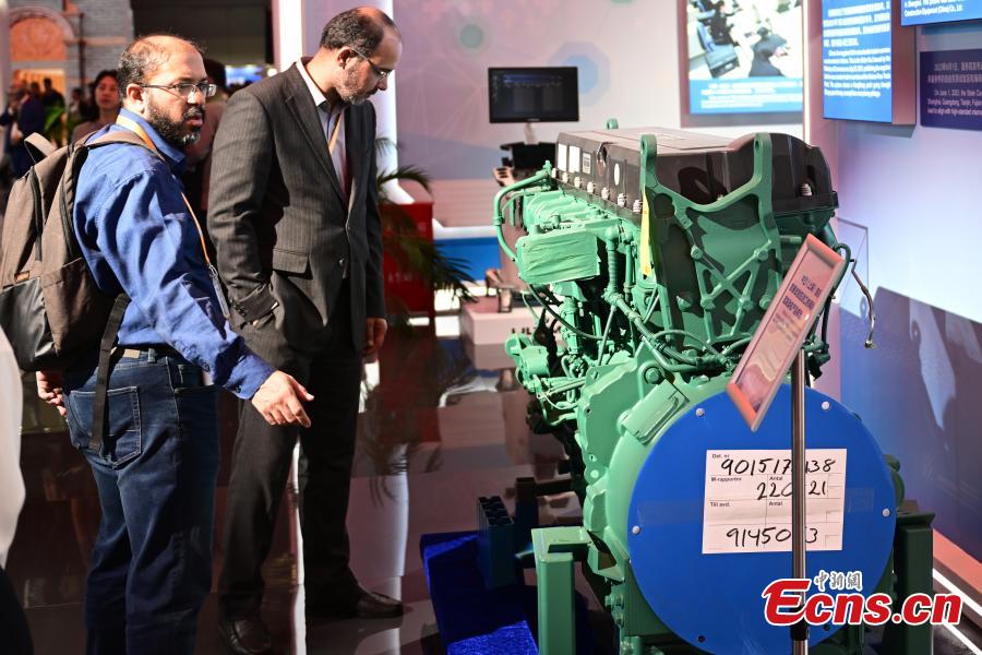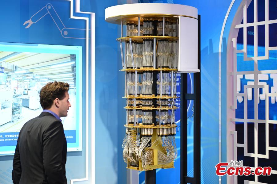 A model of programmable superconducting quantum computing system named "Zuchongzhi" is on display at the China Pavilion at the 6th China International Import Expo (CIIE) in Shanghai, Nov. 7, 2023. (Photo: China News Service/Tian Yuhao)