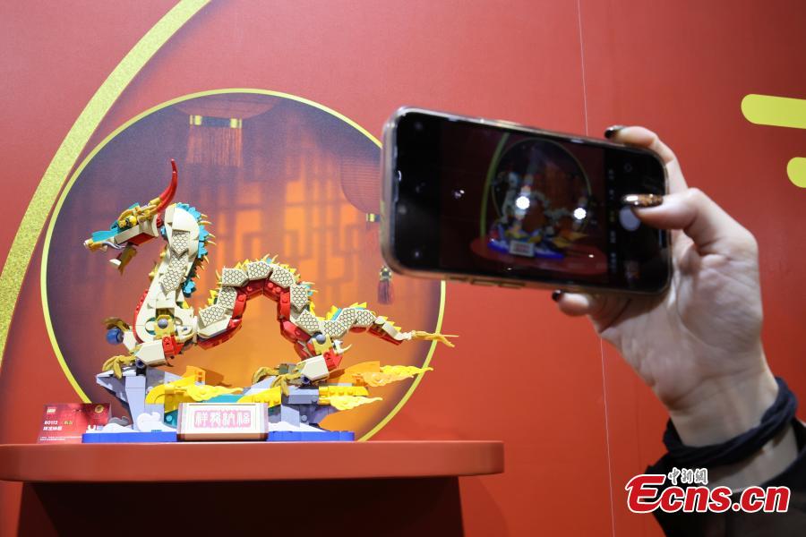 A Lego brick model marking the Year of the Dragon is displayed at the China Pavilion at the 6th China International Import Expo (CIIE) in Shanghai, Nov. 7, 2023. (Photo: China News Service/Yang Kejian)