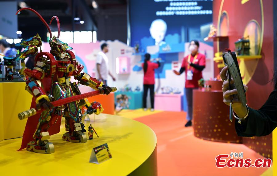 A Lego brick model featuring Sun Wukong or Monkey King is displayed at the China Pavilion at the 6th China International Import Expo (CIIE) in Shanghai, Nov. 7, 2023. (Photo: China News Service/Yang Kejian)