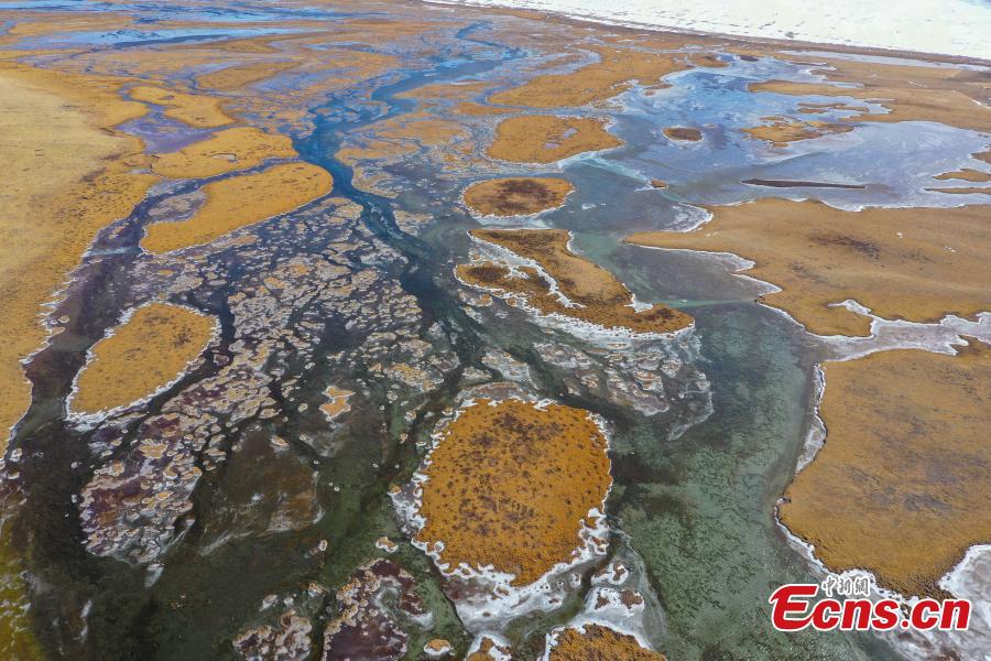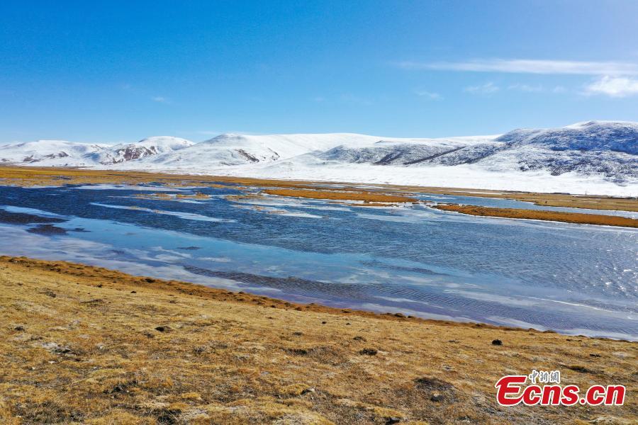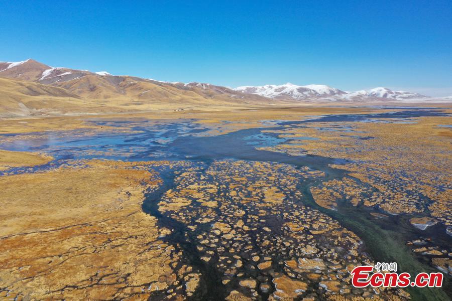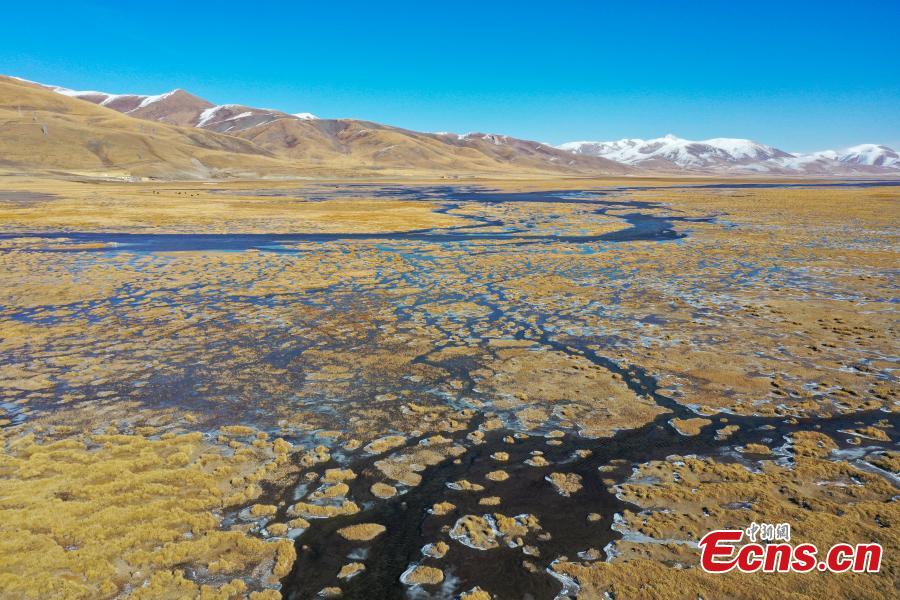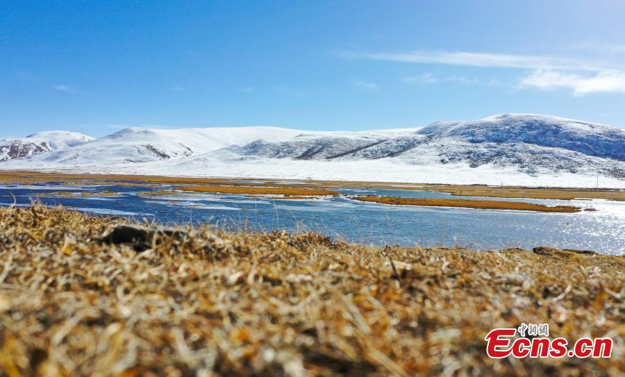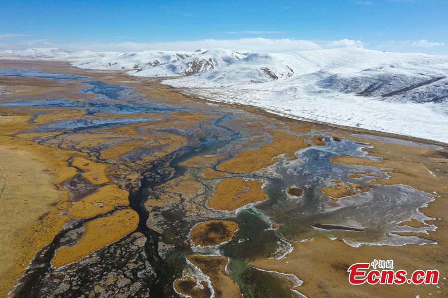 Winter landscape of Longbaotan wetland with snow capped mountains in the background in Yushu City, Yushu Tibetan Autonomous Prefecture, northwest China's Qinghai Province, Nov. 15, 2023. (Photo: China News Service/Ma Mingyan)