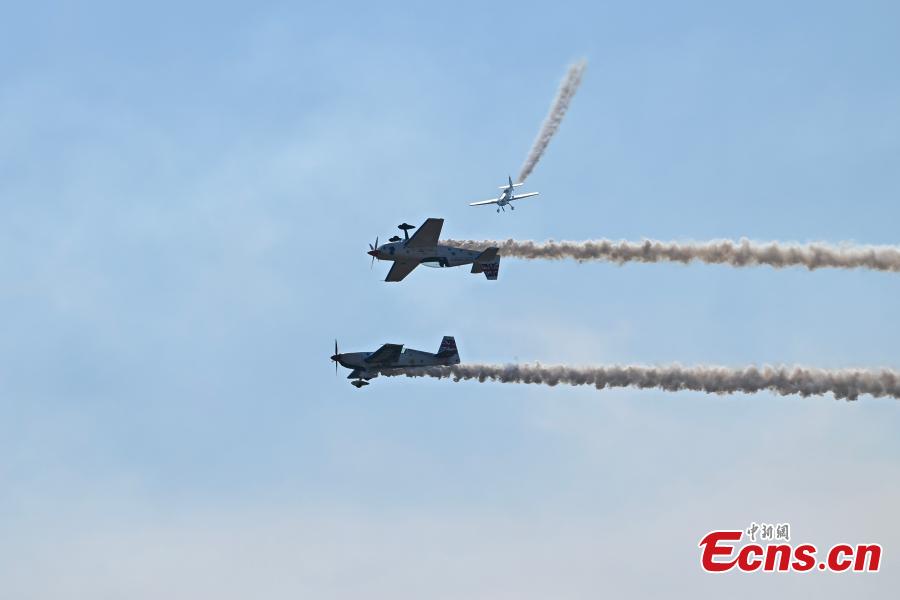 China's "Shanhe" aerobatic team performs during the 2023 Aero Asia show in Zhuhai, south China's Guangdong Province, Nov. 23, 2023. (Photo: China News Service/Chen Jimin)