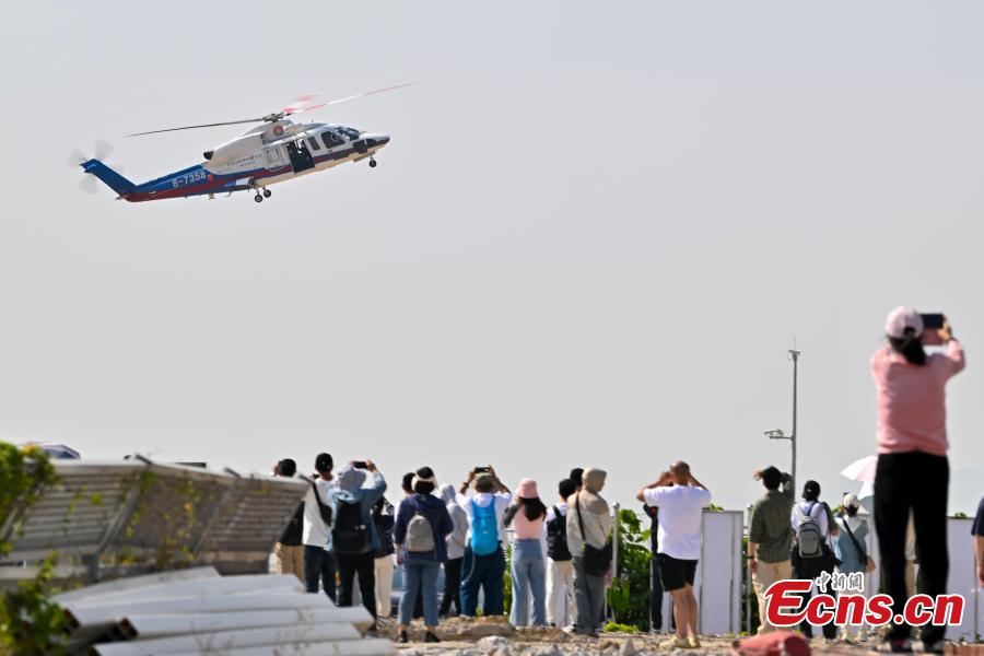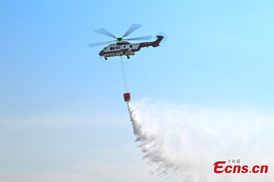 China's Nanhai No. 1 Rescue Flying Service Team conducts fire fighting exercises during the 2023 Aero Asia show in Zhuhai, south China's Guangdong Province, Nov. 23, 2023. (Photo: China News Service/Chen Jimin)