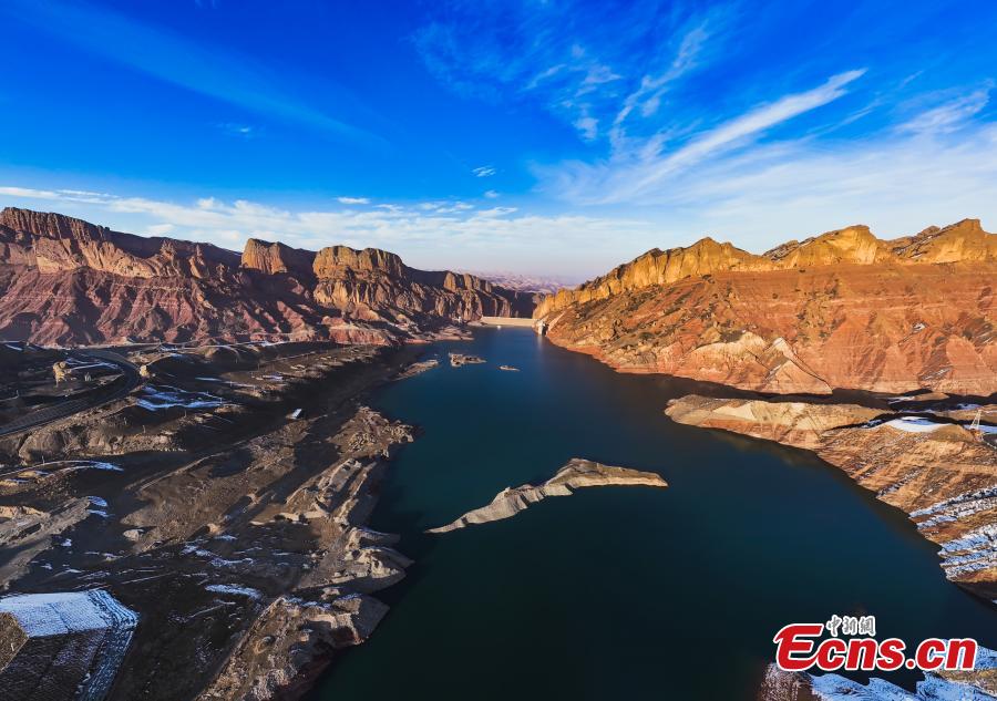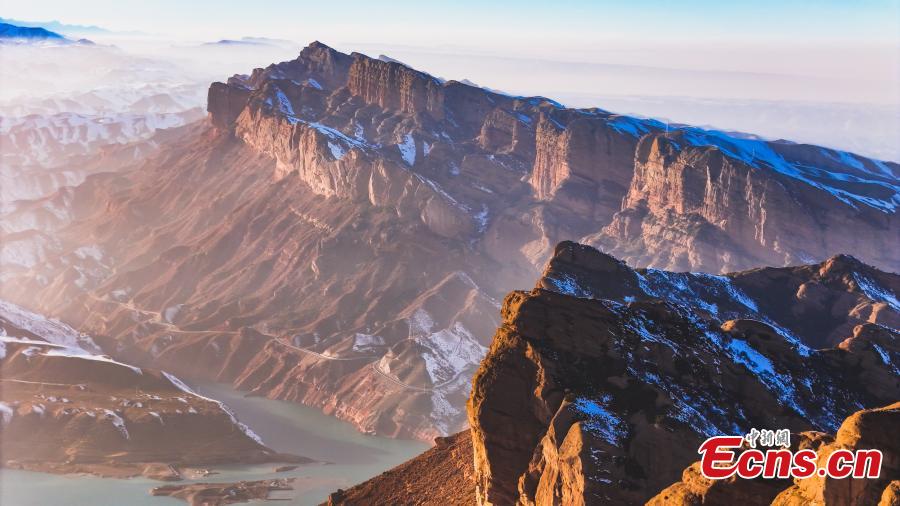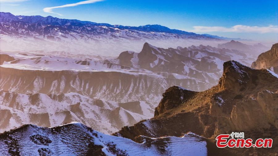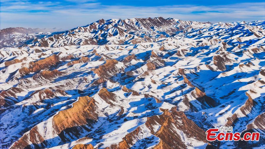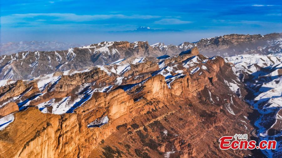 Magnificent scenery of Danxia landform after snow, a landscape characterized by reddish sandstone features, in Hutubi County of Changji Hui Autonomous Prefecture, northwest China’s Xinjiang Uyghur Autonomous Region. (Photo: China News Service/Tao Weiming)