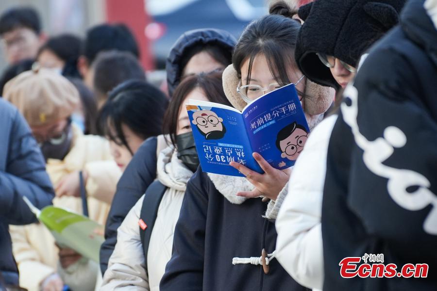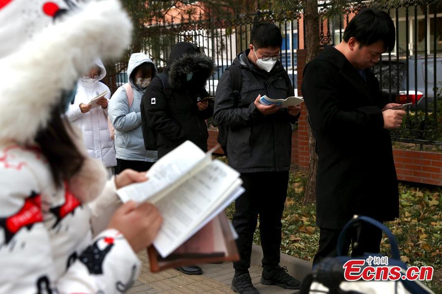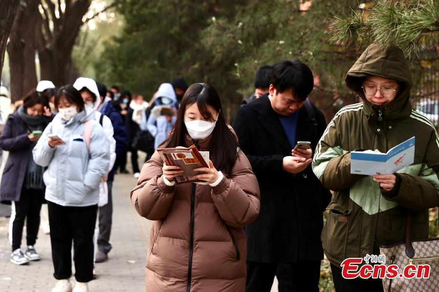 Candidates prepare before taking the civil servant exam in Beijing, Nov. 26, 2023. (Photo: China News Service/Yi Haifei)