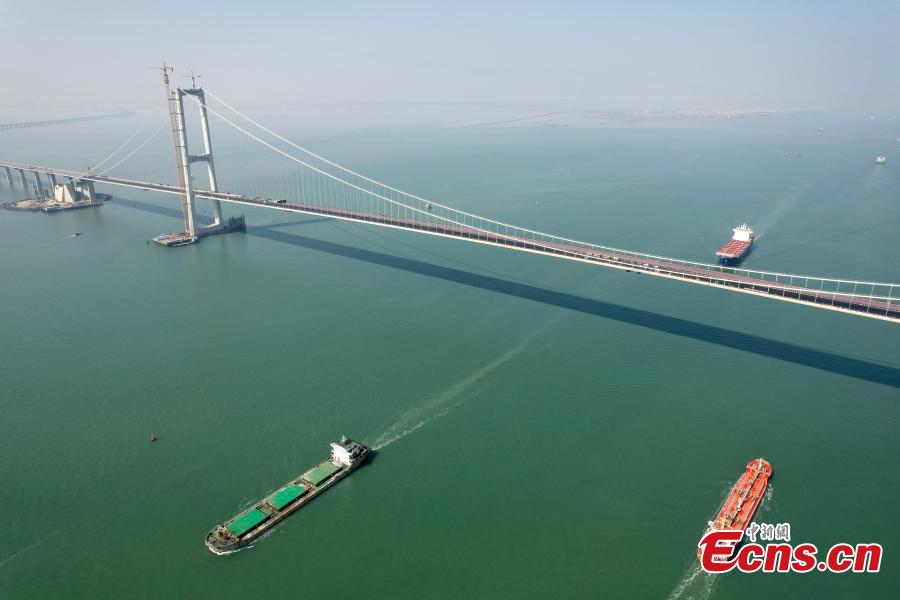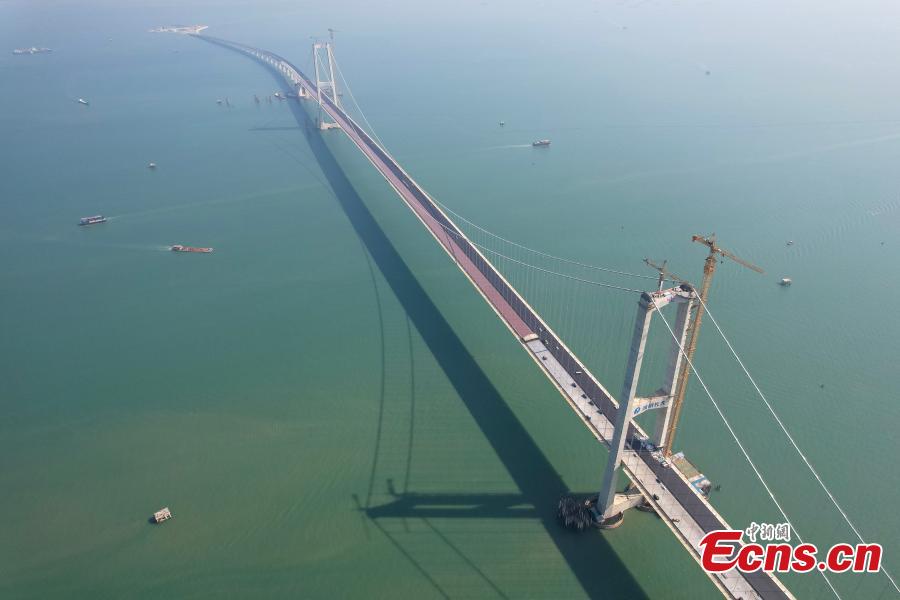 Drone photo shows the Lingdingyang Bridge, part of the Shenzhen-Zhongshan link in south China. (Photo: China News Service/Chen Jimin)