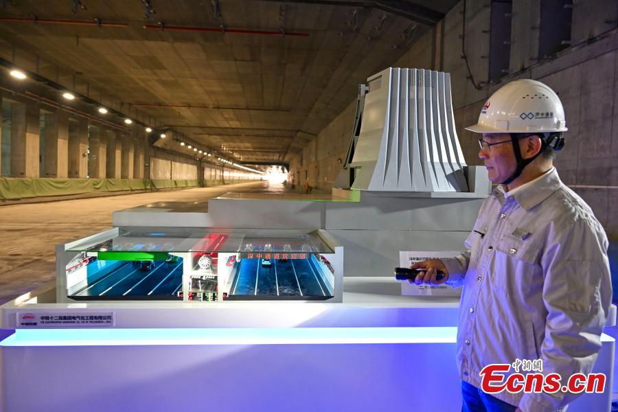 Lanes at the immersed tube underwater tunnel on the Shenzhen-Zhongshan link in the Great Bay Area, Nov. 28, 2023. (Photo: China News Service/Chen Jimin)