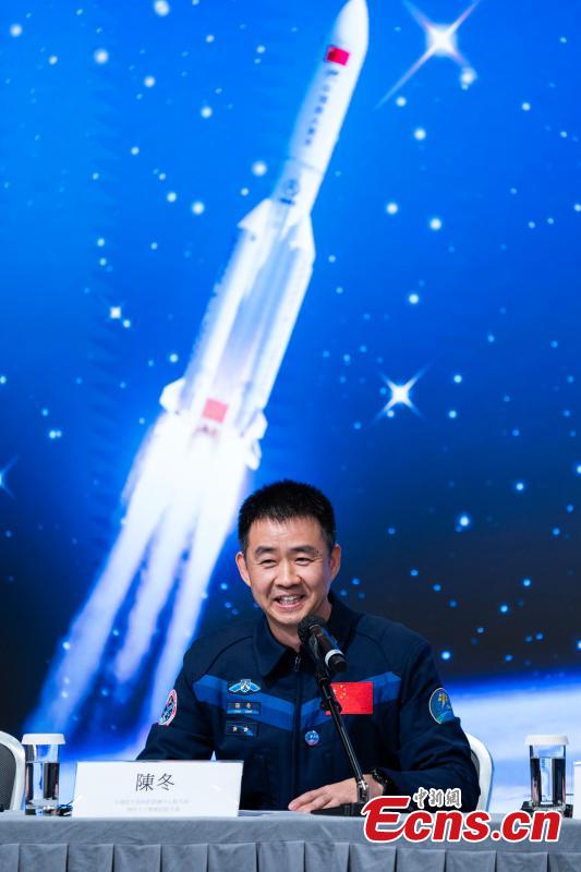 Chen Dong, commander of China's Shenzhou-14 mission, answers questions during a press conference at the Hong Kong Convention and Exhibition Center, the Hong Kong Special Administrative Region, Nov. 28, 2023. (Photo: China News Service/Hou Yu)