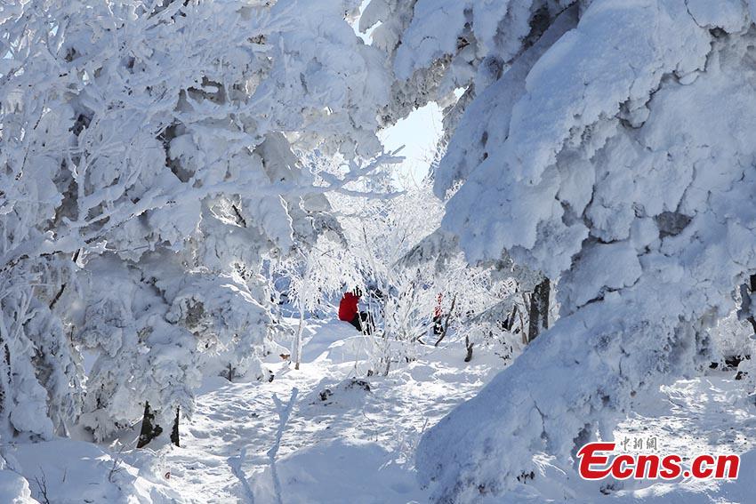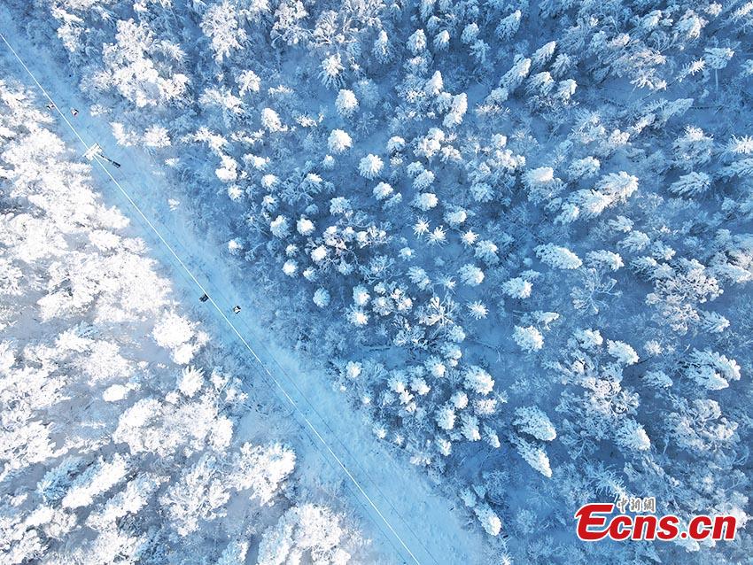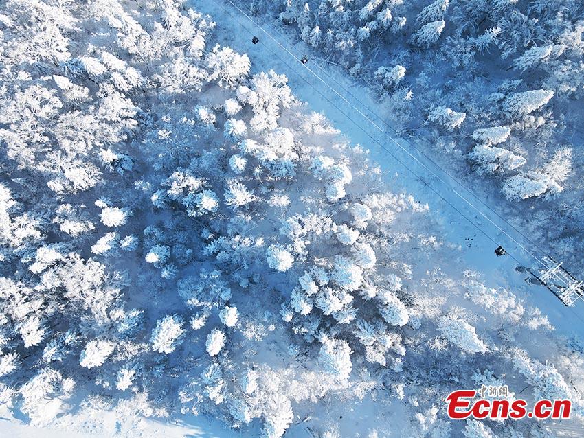 Dreamlike rime scenery at Beidahu ski resort, northeast China's Jilin Province, Nov. 30, 2023. Trees are covered with snow and rime, creating a magical landscape. (Photo: China News Service/Cang Yan)