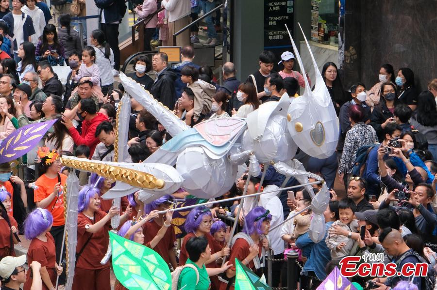 Giant puppets are seen during the Standard Chartered Arts in the Park, an annual program, in the Hong Kong Special Administrative Region, Dec. 3, 2023. (Photo: China News Service/Chen Yongnuo)