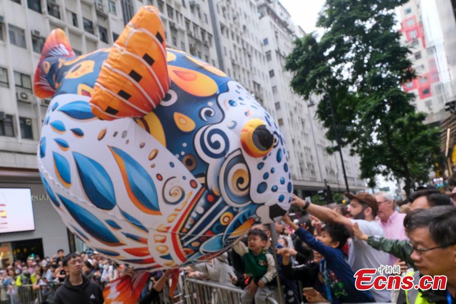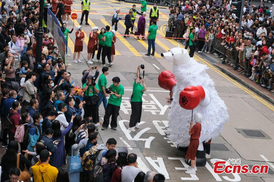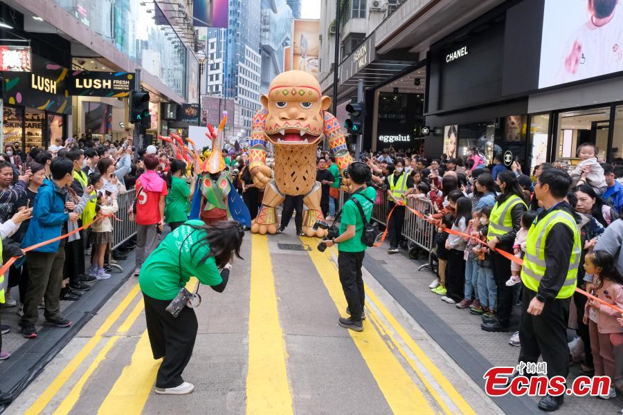 A giant puppet is seen during the Standard Chartered Arts in the Park, an annual program, in the Hong Kong Special Administrative Region, Dec. 3, 2023. (Photo: China News Service/Chen Yongnuo)