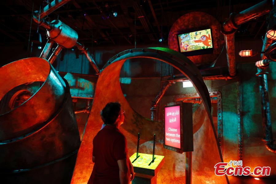 A participant engages in an interactive game at the Green Zone of the 28th session of the Conference of the Parties to the United Nations Framework Convention on Climate Change (COP28), in Dubai, the United Arab Emirates, Dec. 4, 2023. (Photo: China News Service/Han Haidan)