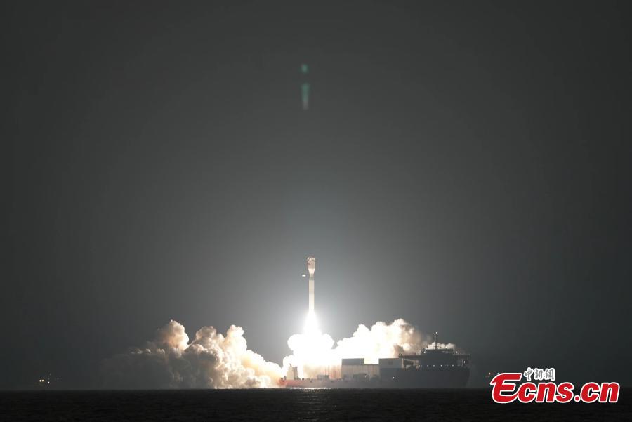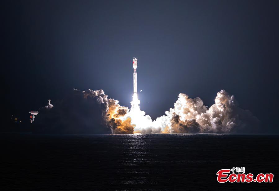 A Smart Dragon 3 carrier rocket carrying a test satellite blasts off from waters off the coast of Yangjiang in south China's Guangdong Province, Dec. 6, 2023. (Photo: China News Service/Zhang Jingyi)