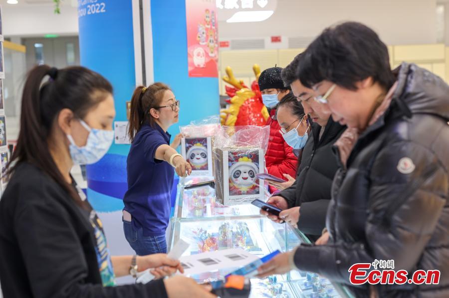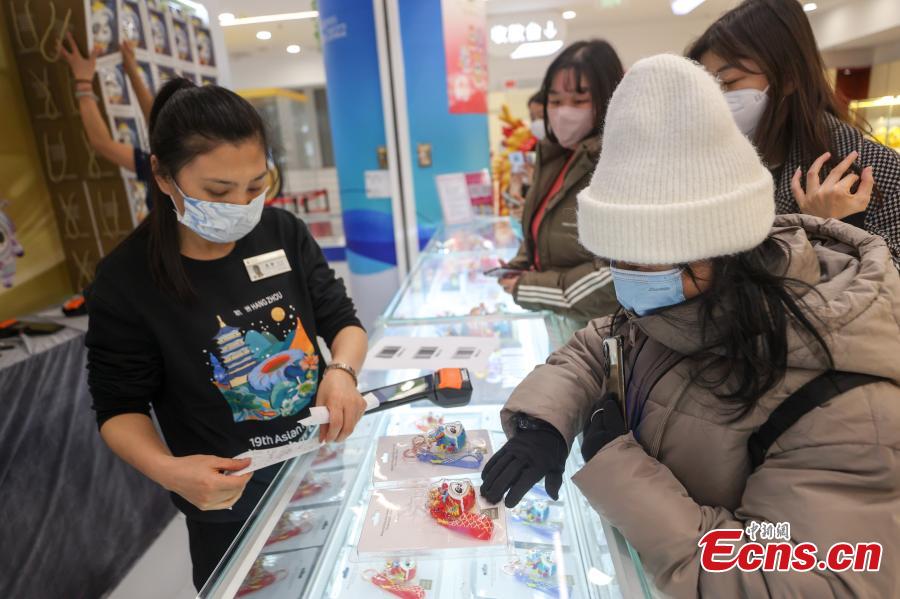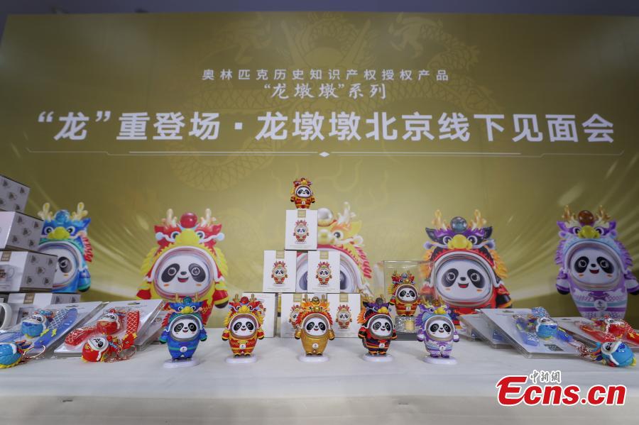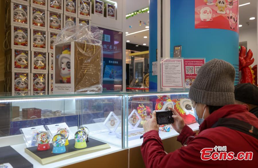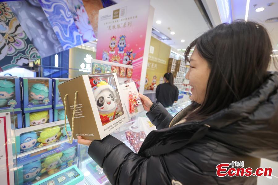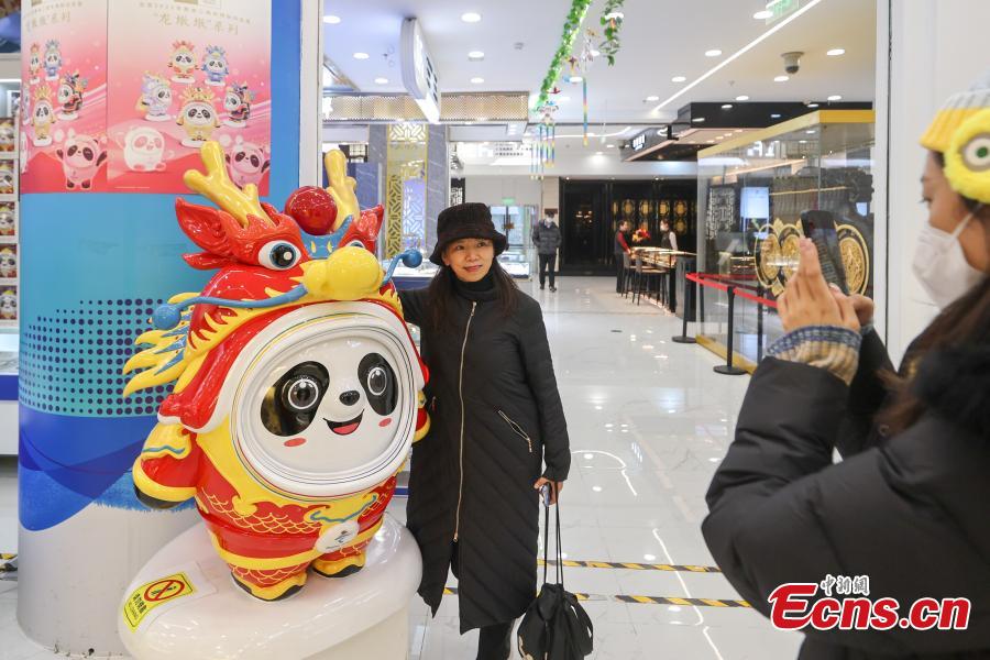 Customers select Chinese zodiac Dragon version of Bing Dwen Dwen, a Beijing Winter Olympic Games mascot, at a store in Beijing, Dec. 7, 2023. (Photo: China News Service/Jia Tianyong)