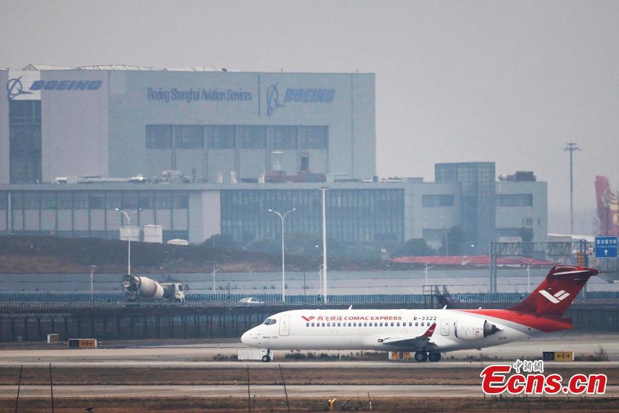 An ARJ21, domestically developed Chinese passenger jetliner, taxies to a runway at Pudong International Airport in Shanghai, Dec. 12, 2023. (Photo: China News Network/Yin Liqin)